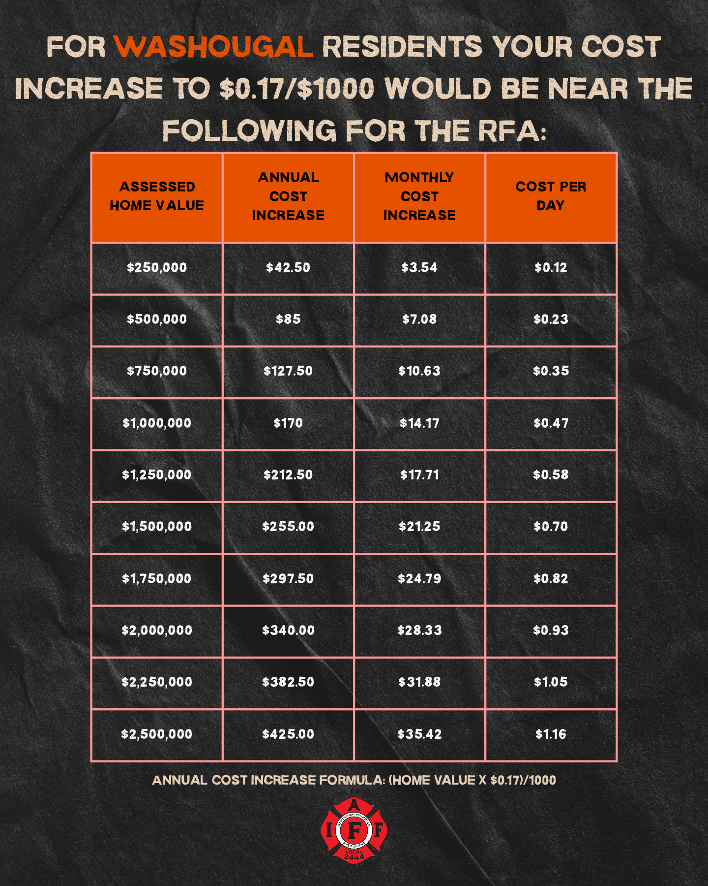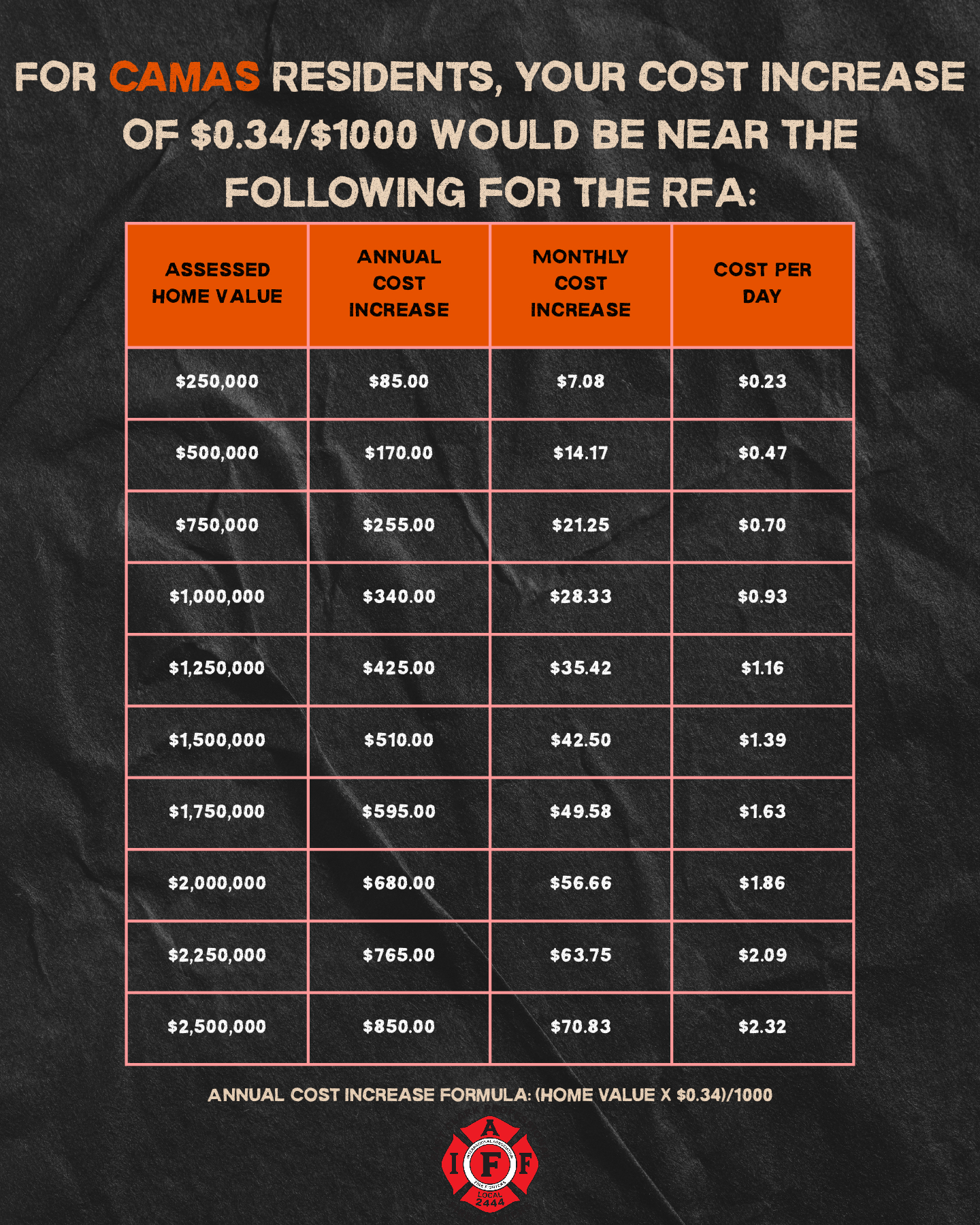 For Camas, scaling back operations could lead to potential layoffs and a loss of experienced firefighters who may seek more stable employment opportunities. An RFA (Regional Fire Authority) would provide an efficient, cost-effective solution with higher service levels, ensuring quality service for all residents of Camas and Washougal in the foreseeable future.